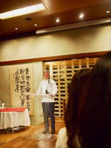 ローラン・ピック駐日フランス大使様。スピーチ中です。日本語での通訳に耳をかたむけていらっしゃる姿が印象的でした。学生時代、東洋への関心を示され、きっと日本語も実はご堪能なのではないかしらと思っております。